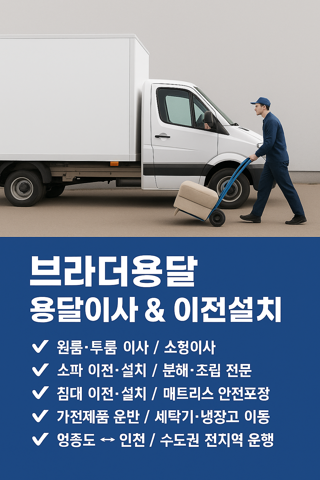 가좌동용달,가좌동원룸이사, 가좌동용달이사, 가좌동오피스텔이사, 가좌동가구이전설치는 브라더용달.1:1견적으로 소개업체가 아닙니다. 그로인해 수수료 포함견적을 내드리지 않습니다.▣ ▣ ▣중요 ▣ ▣ ▣⚠️ 이사 업체 이용 시 꼭 확인하세요일부 업체는 처음 견적을 일부러 낮게 제시한 뒤, 계약금으로 절반 이상을 먼저 받아가고이사 당일 “짐이 늘어났다 / 포장 상태가 좋지 않다”는 이유를 들어 불합리한 추가비용을 요구하는 경우가 많습니다.특히 매트리스, 테이블, 소파 등 중·소형 가구나 가전이 있을 경우,“포장을 고객이 직접 하지 않았다”는 이유로포장비용을 하나하나 요구하는 업체들도 많습니다.당일 취소가 쉽지 않다는 점을 빌미로, 집 앞에 도착한 후 추가 요금을 부당하게 요구하는 경우도 있습니다.✅ 안전하게 이..